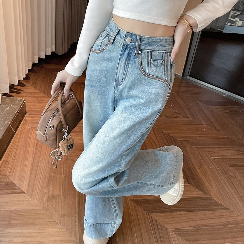 Light Blue Slimming High Waist Wide Legs Mop Pants Flared Pants
