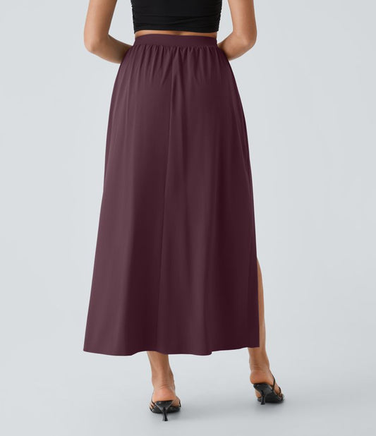 Breezeful Women's High-Waisted Tie-Front Split Flowy 2-in-1 Maxi Quick-Dry Skirt