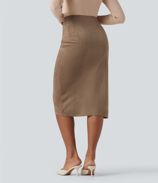 Chic High-Waisted Suede-Feel Tulip Hem Midi Skirt for Women